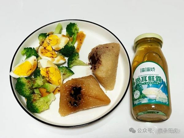 早餐四:银耳鲜露、粽子、鸡蛋西兰花沙拉。