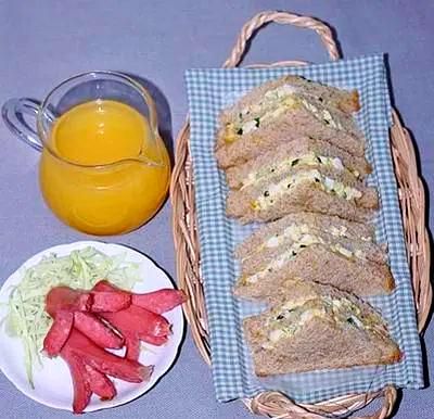 ❒ 6-全麦鸡蛋黄瓜三明治和小红肠
