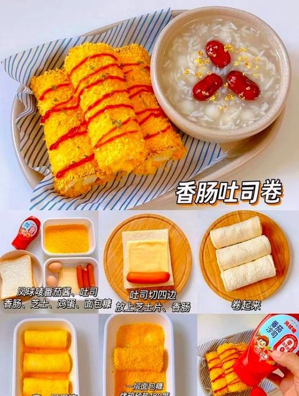 而眼前这份芝士香肠吐司卷,面包糠裹着蛋液在油锅里翻滚,三分钟就能变成金黄色的能量炸弹。