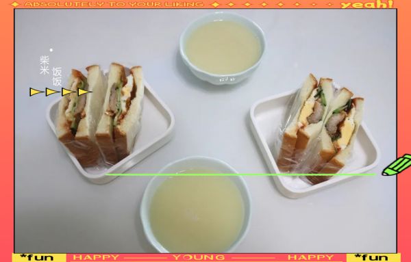周六早餐:三明治与豆浆的完美搭配。制作三明治的过程简单而有趣。首先,将提前腌制好的肉排煎至金黄,同时煎几个荷包蛋备用。接着,取一片面包片,铺上保鲜膜,然后依次摆放上各种食材,如生菜、番茄片、煎蛋等,再挤上适量的番茄酱或沙拉酱增添风味。最后,盖上另一片面包,用保鲜膜紧紧包裹,对半切开即可享用。搭配上预约好的豆浆,营养丰富的早餐就大功告成。