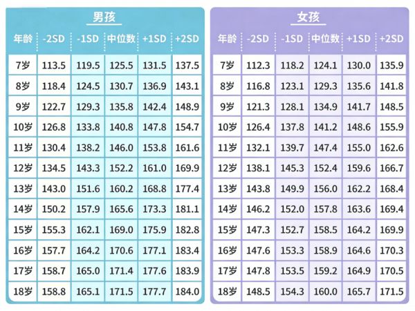 7 岁+身高标准可以参考这个