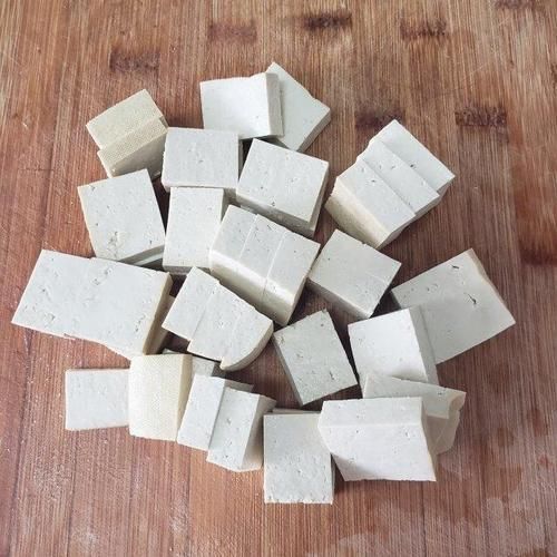 第2步、将北豆腐切成适口大小的块状。