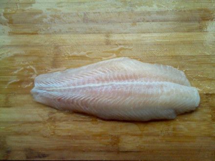 1.将龙利鱼改刀,片成鱼片,不需要太薄,对刀功要求不是很严了!
