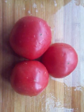 3.番茄加入热水浸泡,去皮!将去皮后的番茄切丁!
