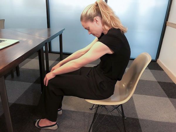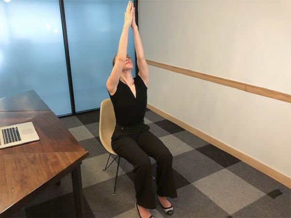 每个瑜伽姿势都要确保坐在座位边缘。你可以随时练习这些瑜伽姿势。