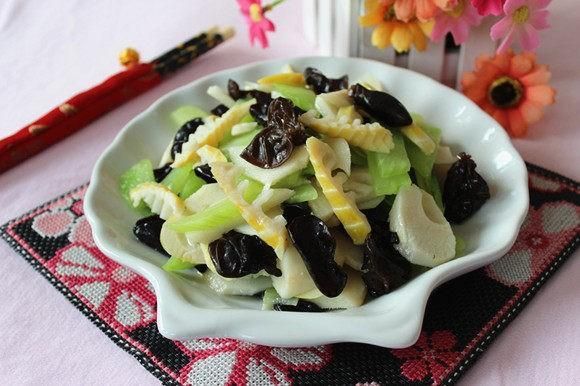 材料:竹笋300克、莴笋250克、黑木耳15克。