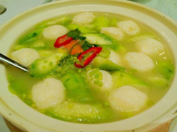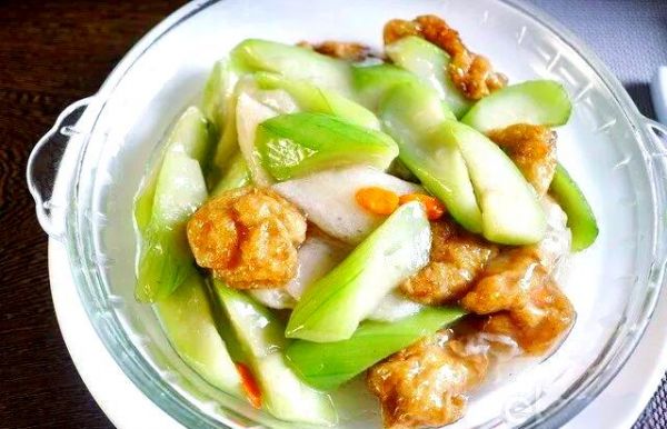 材料:丝瓜、新鲜香菇、素鸡肉浆、素小虾、竹笋