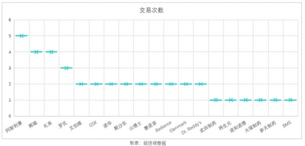 美国药企辉瑞、礼来亦频频出手,分别进行了4次交易。