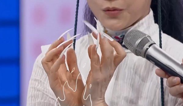 尤为显眼的是,在节目中,杨丽萍展现了自己独创的孔雀舞。作为孔雀舞而言,最为突出的代表,则是手指灵动。杨丽萍也现场开班授课,表演手指舞,一双超长的手指甲也尤为抢镜吸睛,令一众嘉宾赞叹不已。