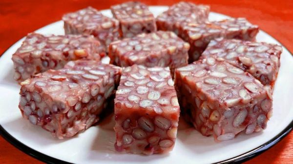 蒸好后取出,放在一边让它自然冷却到室温。别急着脱模,热的时候很软很粘。 等红豆糕完全凉透后,连容器一起,盖上盖子或保鲜膜,放入冰箱冷藏室!冷藏至少3-4个小时(过夜更好)。这一步超级重要!冷藏能让糯米充分定型变硬,口感更Q弹,而且切的时候完全不粘刀!