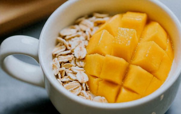 将制作好的芒果燕麦杯冷藏一夜,作为早餐享用,其饱腹感可维持至中午。