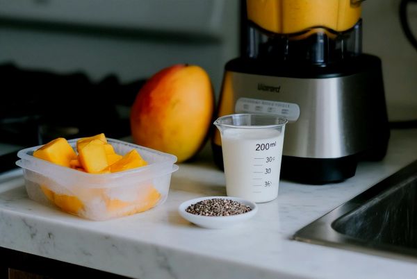 所需食材:一个熟透的芒果、200毫升无糖酸奶、一小勺奇亚籽。