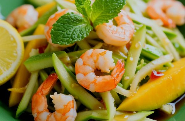 这道芒果虾仁沙拉不仅蛋白质含量丰富,还含有大量的膳食纤维,是减肥期间的理想选择。