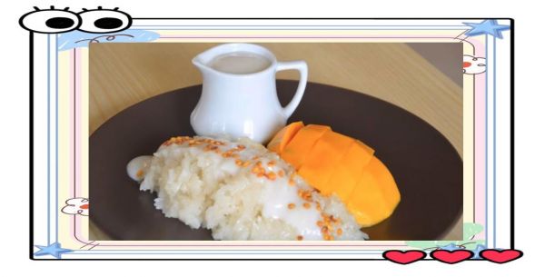 材料:适量糯米、1个成熟的芒果、3杯新鲜的椰浆、1茶匙白糖、适量食盐。