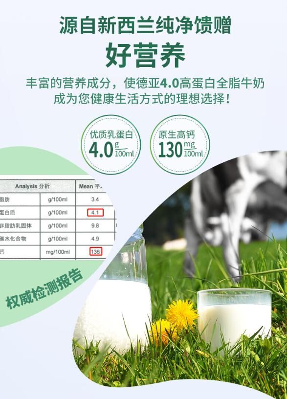 8. 德亚新西兰进口4.0g原生高蛋白高钙全脂纯牛奶