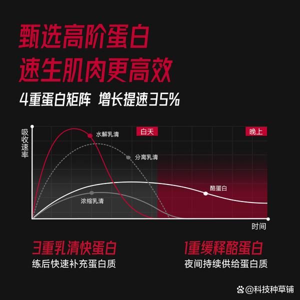 四重快慢蛋白矩阵:产品设计了水解乳清蛋白、分离乳清蛋白、浓缩乳清蛋白以及酪蛋白四重蛋白矩阵,确保在训练后快速补充所需的蛋白质。同时,慢释蛋白的设计使得夜间肌肉也能得到充足的营养支持,实现24小时全方位的增肌效果。
