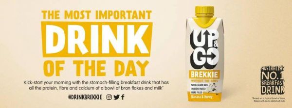 英国品牌Up & Go推出一款营养丰富的香蕉蜂蜜风味的混合饮料,由牛奶和燕麦的混合物制成,蛋白质含量和纤维含量高,脂肪含量低,且富含维生素和矿物质,非常适合早餐饮用。