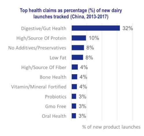 新上市的乳制品中各种健康宣称所占的百分比