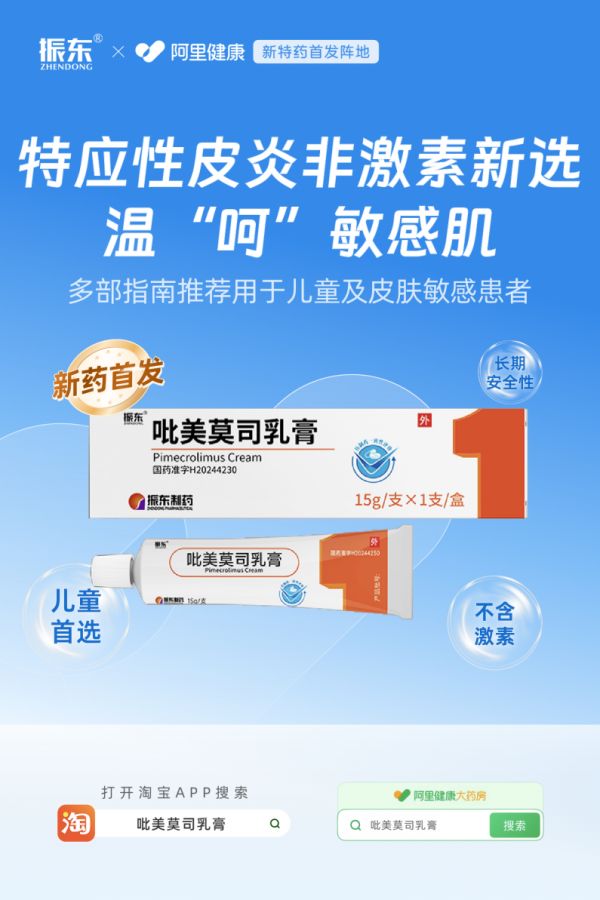 2月5日,振东健康集团公司旗下“吡美莫司乳膏”在阿里健康率先首发。对于特应性皮炎患者,尤其是儿童及面部皮炎患者及其家庭而言,现在可通过阿里健康获取这款不含激素的局部免疫调节剂,作为兼顾疗效与长期安全性的治疗新选择。