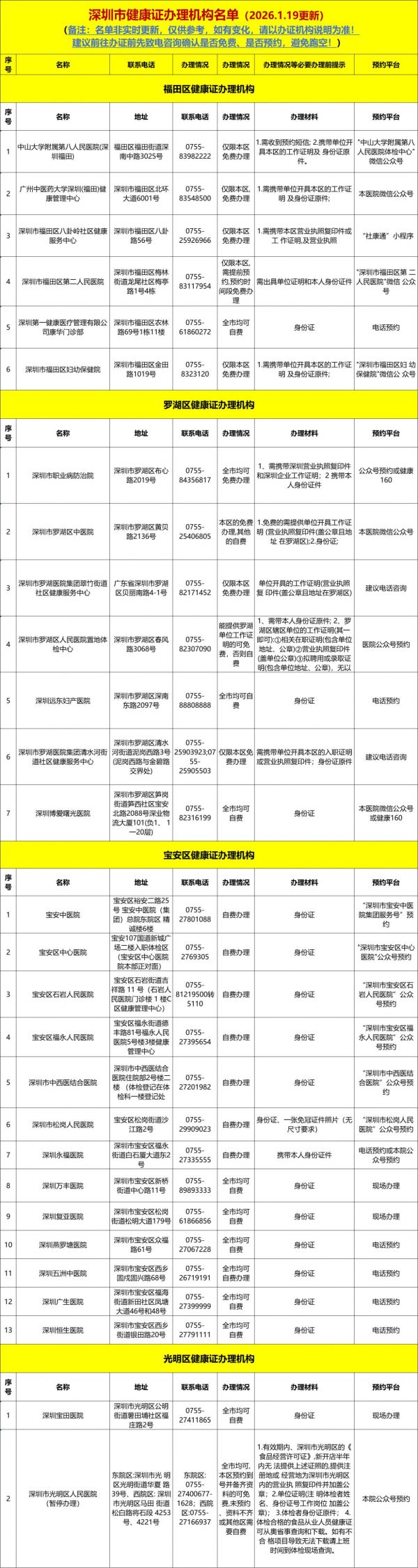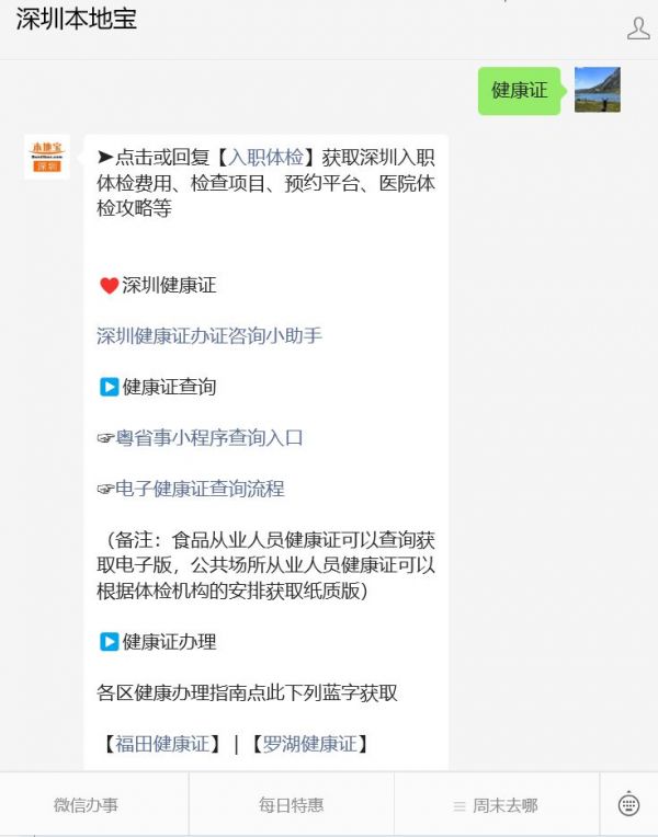 温馨提示:微信搜索公众号【深圳本地宝】,关注后回复【健康证】获取深圳健康证办理地点汇总+咨询电话+办理攻略、免费办理机构名单、电子健康证查询入口+查询流程、健康证体检项目等