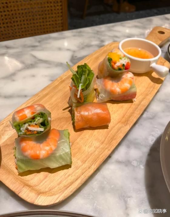 越南春卷通常包含瘦肉、虾仁和大量的新鲜蔬菜,卷在米纸里,搭配清淡的蘸酱,既健康又不会让你感到太过沉重。