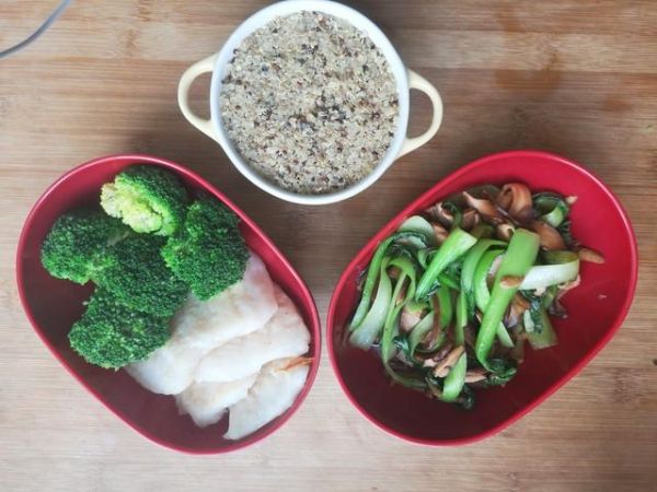 1、清蒸鲈鱼+清炒西兰花+糙米饭