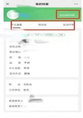 完成上述步骤后,您就可以查询自己的健康档案信息,包括个人基本情况(个人信息、既往史、生活环境)以及相关的医疗服务记录(门诊记录、住院记录、体检情况、重点人群随访记录以及各种检验、检查报告)。
