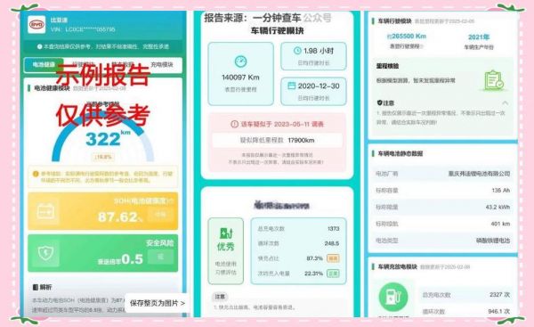 通过输入车架号到可靠第三方平台,获得电池的循环次数、快充占比以及历史健康度曲线。这些数据能够帮助我们更准确地了解电池的实际状况。