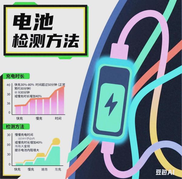 充电时长对比:若快充从30%充至80%所需时间超过50分钟(通常约为30分钟),或慢充时长明显增加40%,这可能表明电池内阻有所增大。