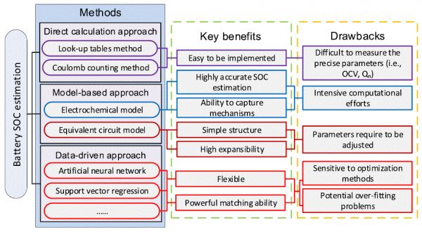 SOC 估计方法及关键问题:SOC估计方法可以分为直接计算,基于模型,基于数据驱动三个主要类别,如图2所示。