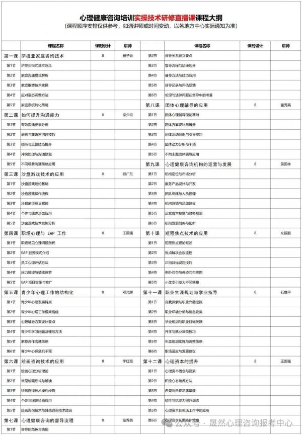 培训师资力量尤为雄厚,不仅汇聚行业专业人士,更有拥有 20 多年心理咨询与治疗实战经验的单淮方老师亲自授课,为教学质量筑牢根基;