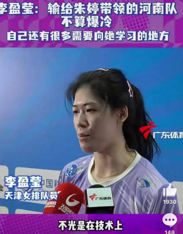 全运会首战不敌朱婷领衔的河南女排后,天津女排李盈莹在接受采访时表达了对朱婷的尊重以及学习之心。她认为朱婷作为球队领袖,在技术、精神和经验方面都能够给予队友很大的帮助,自己也需要向她学习。李盈莹展现了高瞻远瞩的态度,引发人们的共鸣。