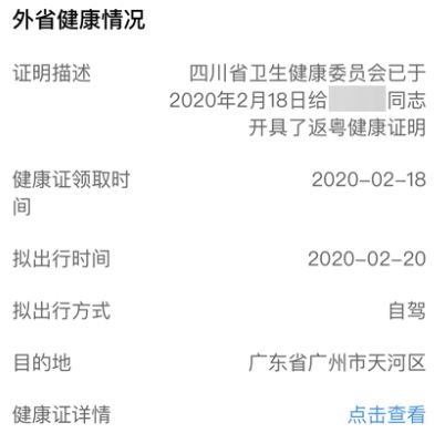 2.查看外省健康情况,川籍入粤复工的群众可以查看四川省相关部门开具的返粤健康证明。