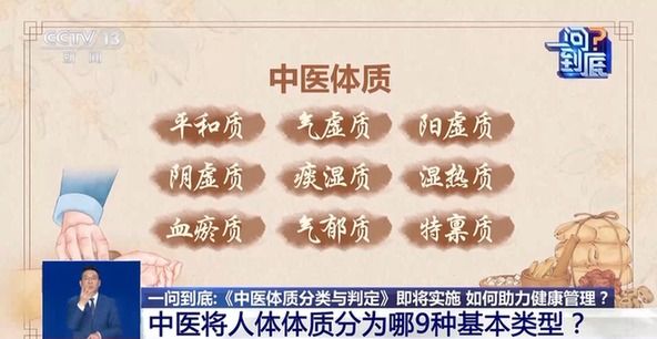 近日,市场监管总局(国家标准委)批准发布《中医体质分类与判定》推荐性国家标准。该标准由国家中医药管理局组织起草,将自4月1日起正式实施。中医将人的体质分为了哪9种基本类型?各自有怎样的核心特征?中医体质分类又将如何助力全民健康管理?