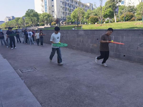 活动以团队协作类项目为核心,设置珠行万里、有轨电车、四平八稳、蒙眼敲锣四个趣味项目,所有项目同步开展,兼顾参与性与趣味性。珠行万里项目中,同学们分成两组,手持U型槽接力运送小球,在应对小球掉落的意外中,锻炼了抗压能力与情绪调节能力;有轨电车上,队员们双脚固定在连接绳上,同步迈步、相互配合,在协调步伐中学会倾听与尊重,缓解人际沟通压力。