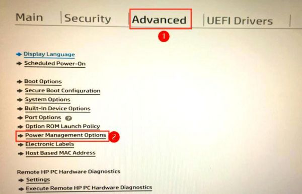 使用右方向键进行选择,找到并进入“Advanced”选项。接着,通过上下方向键定位到“Power Management Options”,并按下回车键进入该页面。
