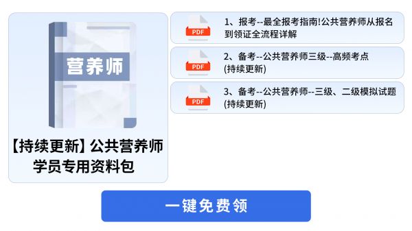 以上就是“2026年公共营养师:全年4次考试安排一览”的内容了,建议各位考生认真阅读,提前备考。另外,文章尾部“点击免费下载”可领取更多公共营养师备考资料,如历年真题、模拟试题与答案解析、考试技巧等备考资料。