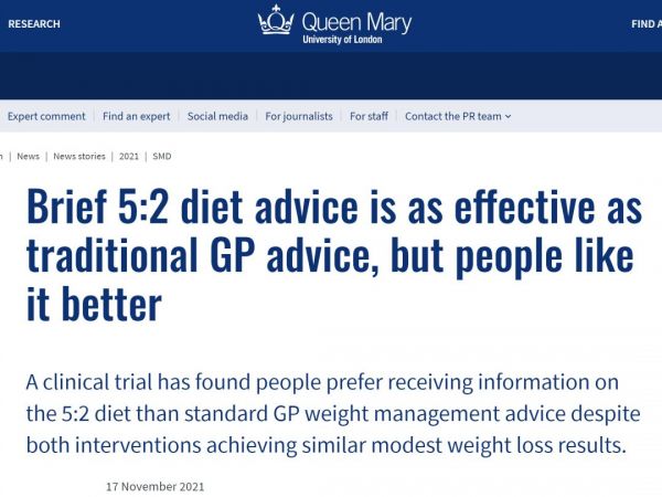 Brief 5:2 diet advice is as effective as traditional GP advice, but people like it better