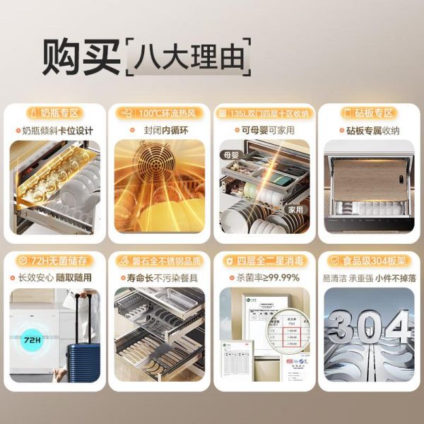 怎么选:预算充足,追求极致杀菌效果,选三重消毒;预算有限,至少选“高温+紫外线”或“臭氧+紫外线”组合。
