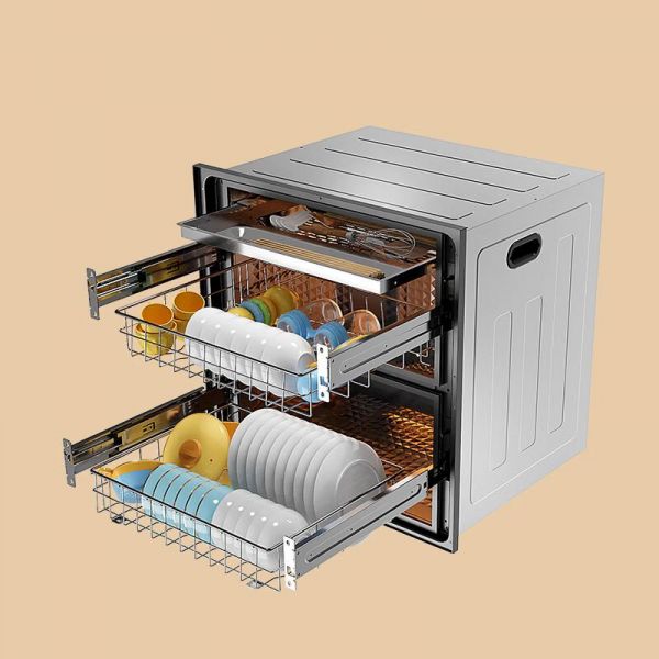 代表特点:单一消毒方式(高温或臭氧)、50-60L小容量、基础不锈钢内胆、无智能功能。优点:价格便宜,体积小巧(可嵌入式或台式),适合1-2人租房党、小户型。缺点:消毒方式单一,可能不适用所有材质;烘干效果一般,需要手动通风。适合人群:预算有限、餐具少、对消毒要求不极致的单身或情侣。