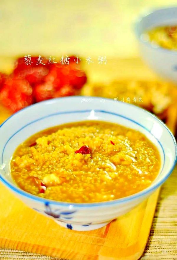 材料:藜麦50克、小米50克,红枣6个、红糖30克,核桃仁适量
