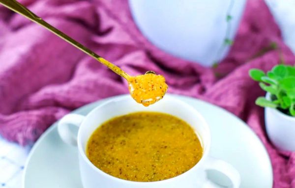 待藜麦冒出小牙,经过大约15分钟的慢煮,美味的胡萝卜土豆藜麦粥便大功告成。此时,汤水清澈爽口,绝不粘连。若为宝宝食用,可将其打成细腻的糊状。