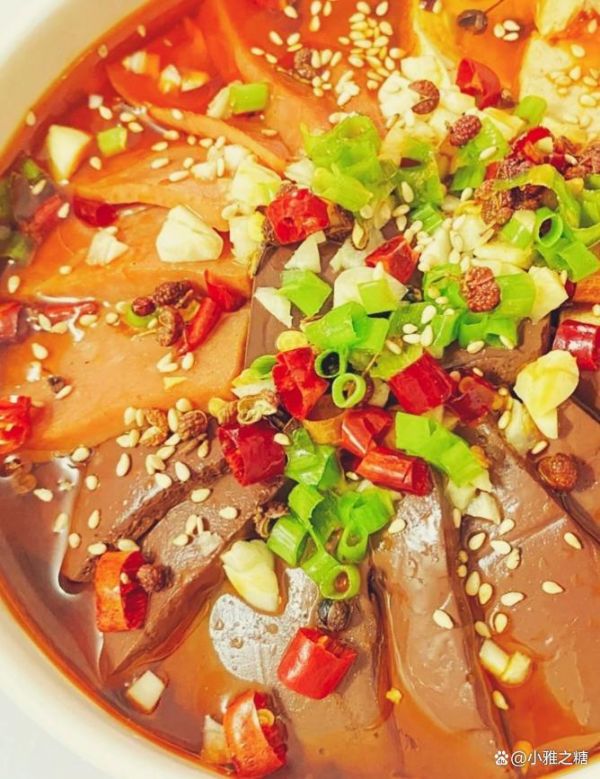 6:撒上胡辣子,大蒜末,淋上热油即可,再撒上香葱末或者香菜段芝麻,即可