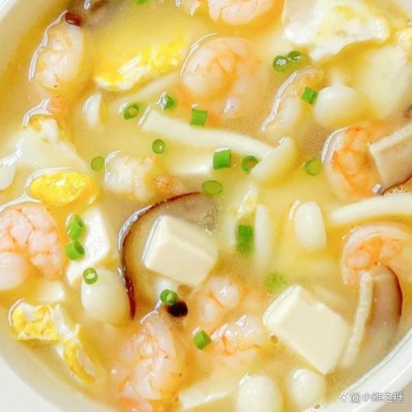 鸡蛋 虾仁 嫩豆腐,白玉菇,香菇