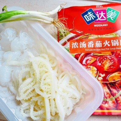 毛肚 1盒魔于丝 1盒豆腐 1块白菜 100克大葱 半根小葱 根味达美浓汤蕃茄火锅底料 1包做法步骤