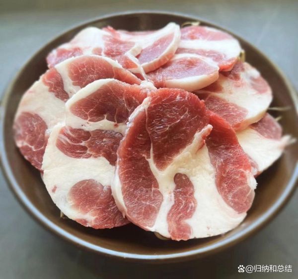 老肉片通常指的是猪里脊或梅头肉切成较厚的片状。之所以叫“老肉片”,是因为这种肉需要煮的时间稍长,但煮好后口感鲜嫩多汁。