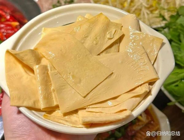 在重庆火锅中,豆皮不仅能提供植物蛋白,还能缓解辣味。对于不太能吃辣的人来说,豆皮是不错的选择。