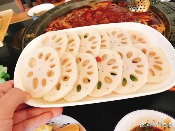 藕片是重庆火锅中常见的蔬菜配菜。它口感清脆,略带甜味,能平衡火锅的麻辣感。
