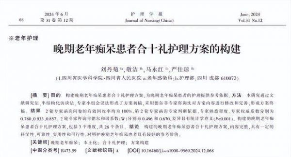 [1]刘丹菊.晚期老年痴呆患者合十礼护理方案的构建,护理学报,2024-06-25