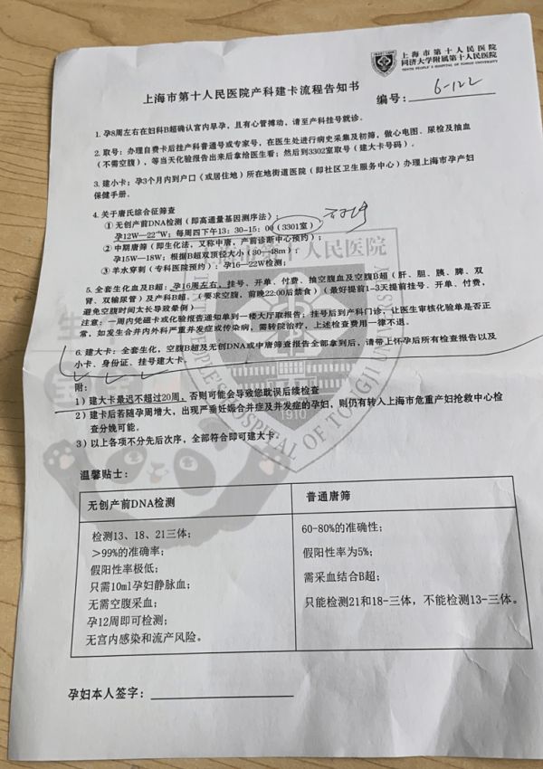 预约提醒:大排畸、无创DNA需提前预约,建议早到医院取号。